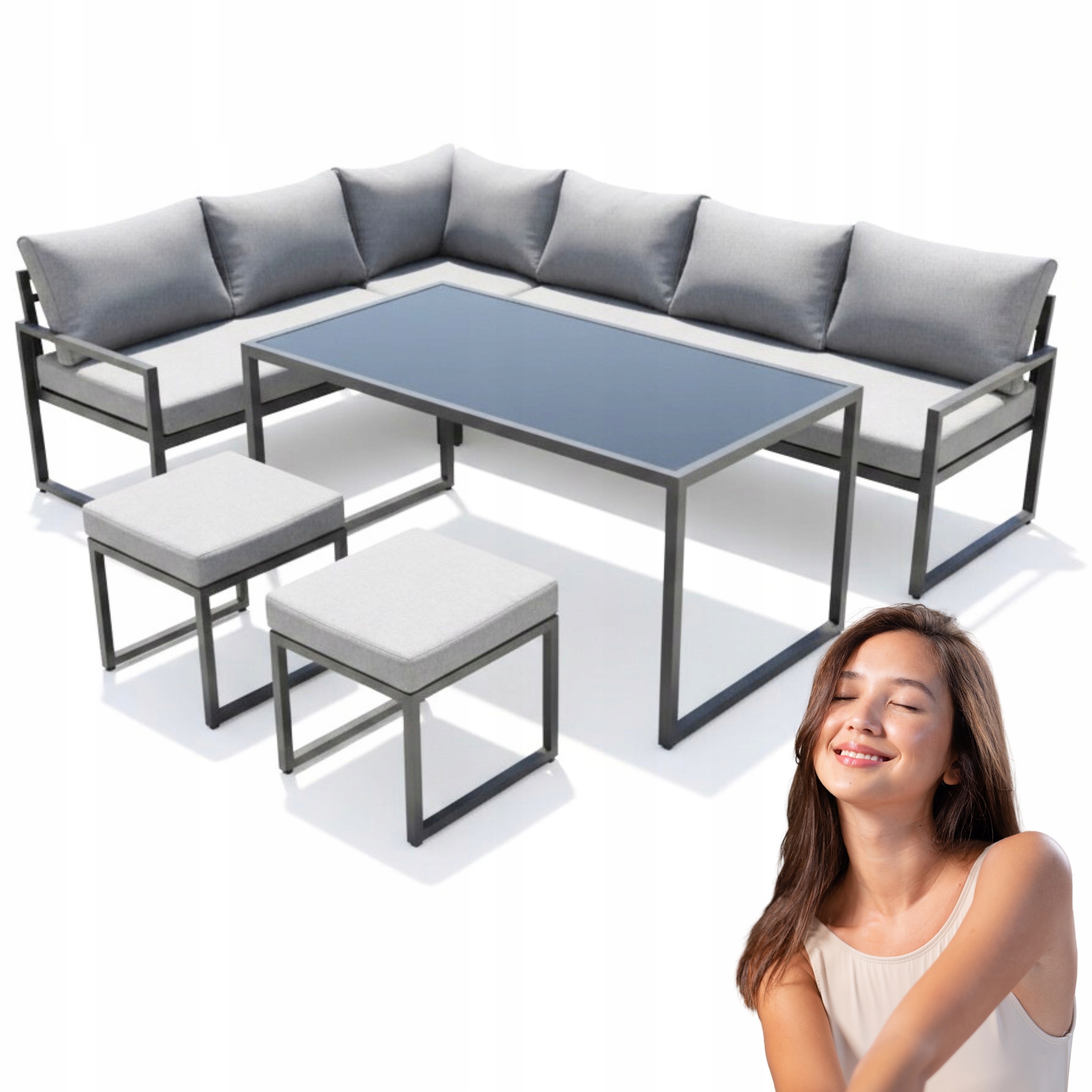 MEBLE OGRODOWE METALOWE METALOWY DUŻY NAROŻNIK STÓŁ 2PUFY ZESTAW XLS-2013 Liczba osób 7